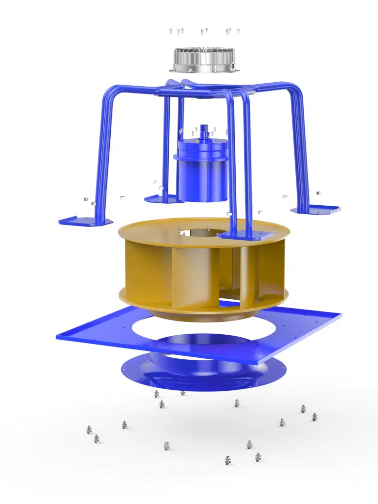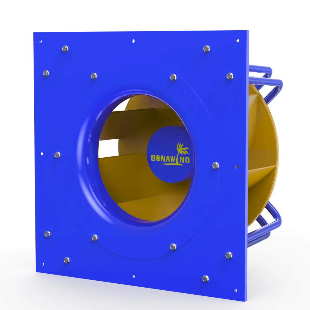 The motor provides the rotational power for the impeller. Centrifugal fans typically use three-phase permanent magnet motors, with power and speed selected based on design requirements.Frame and Base